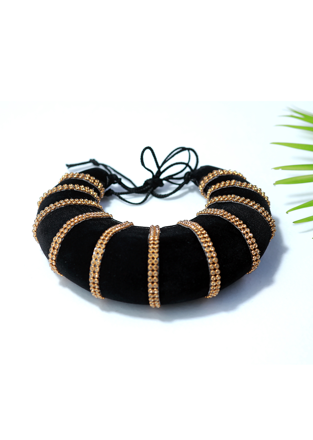 A Kuchipudi vada in gold is a radiant hair ornament that embodies elegance and tradition. This exquisite piece features intricate designs and embellishments, meticulously crafted to highlight the beauty of the dancer's hairstyle. Adorned with shimmering gold accents, it adds a touch of opulence and sophistication to the Kuchipudi dance attire, enhancing every movement on stage with its gleaming brilliance. Embrace the timeless allure of a Kuchipudi vada in gold, a symbol of cultural richness and artistic expression in classical Indian dance.