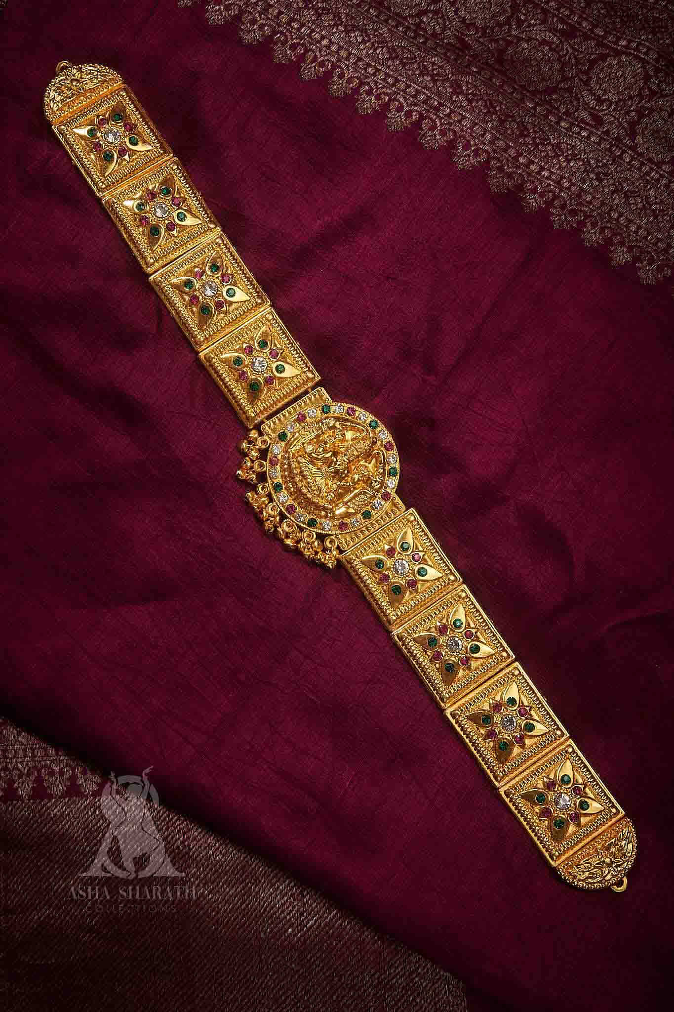 Elevate your Bharatanatyam performances with our exquisite Lakshmi Designs Hip Belt. Crafted with meticulous attention to detail, this stunning accessory beautifully accentuates your movements, adding grace and elegance to every step. Inspired by the divine symbol of prosperity, the Lakshmi motif adorns this belt with intricate designs, creating a captivating blend of tradition and sophistication. Elevate your dance attire with this timeless piece that exudes the essence of Bharatanatyam's rich heritage.