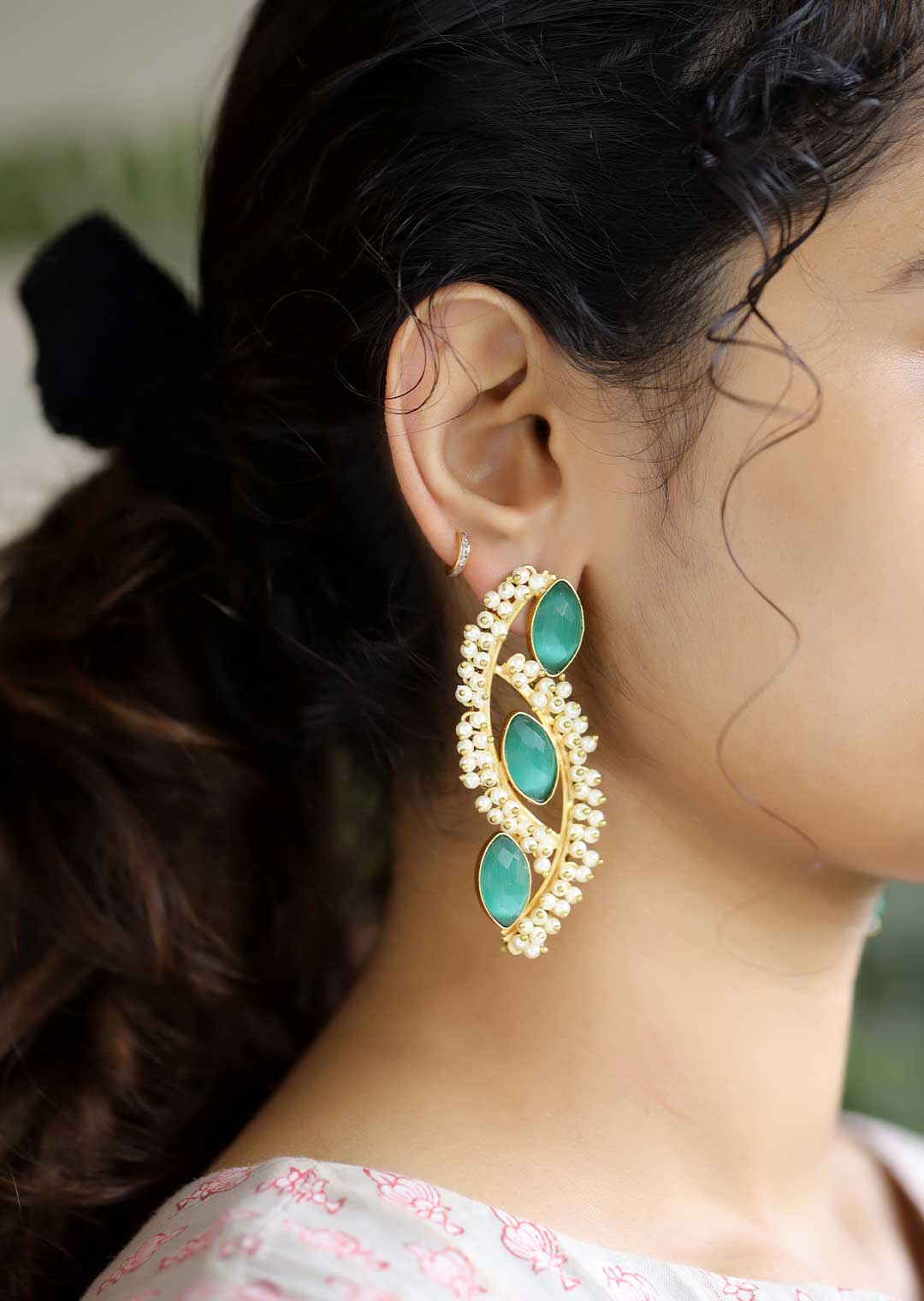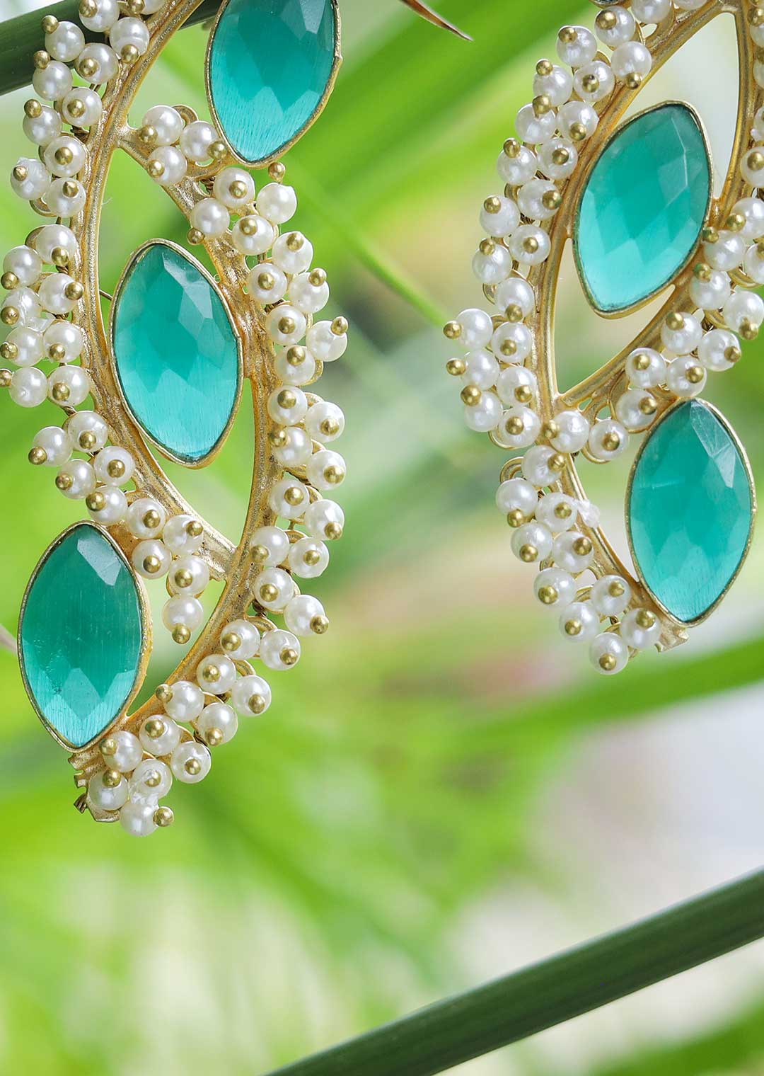 A pair of ethnic-inspired drop earrings. These stunning earrings in cyan color add a touch of elegance to every outfit. Perfect for both casual and formal occasions, they effortlessly blend cultural charm with contemporary fashion.