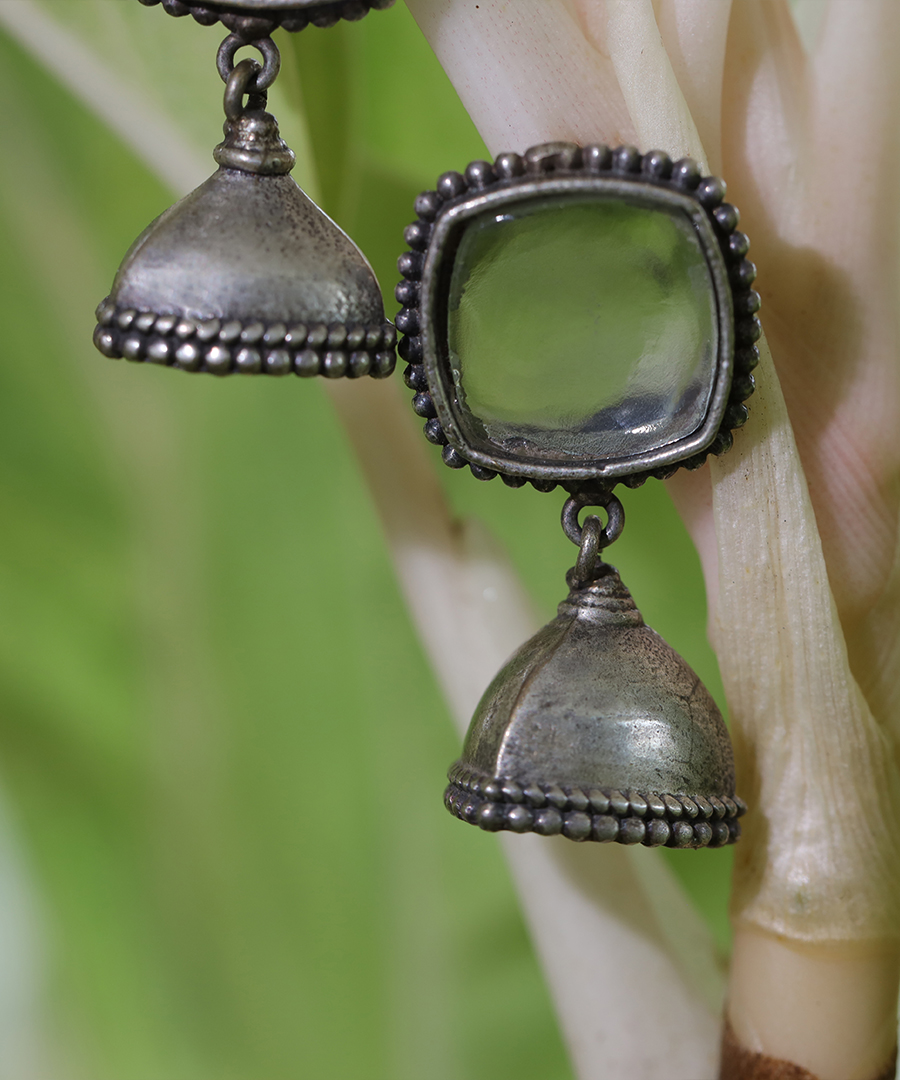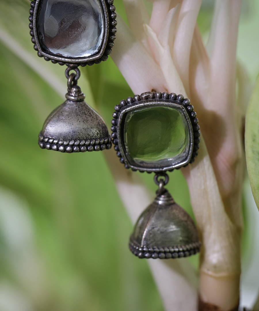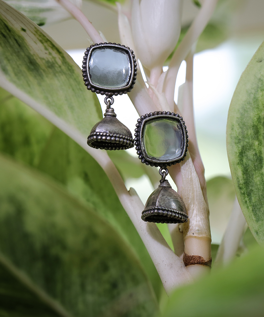 The silver oxidized finish adds a touch of antique charm, making these earrings perfect for both casual and formal occasions. They exude a unique allure, reflecting light and radiating a mesmerizing brilliance.