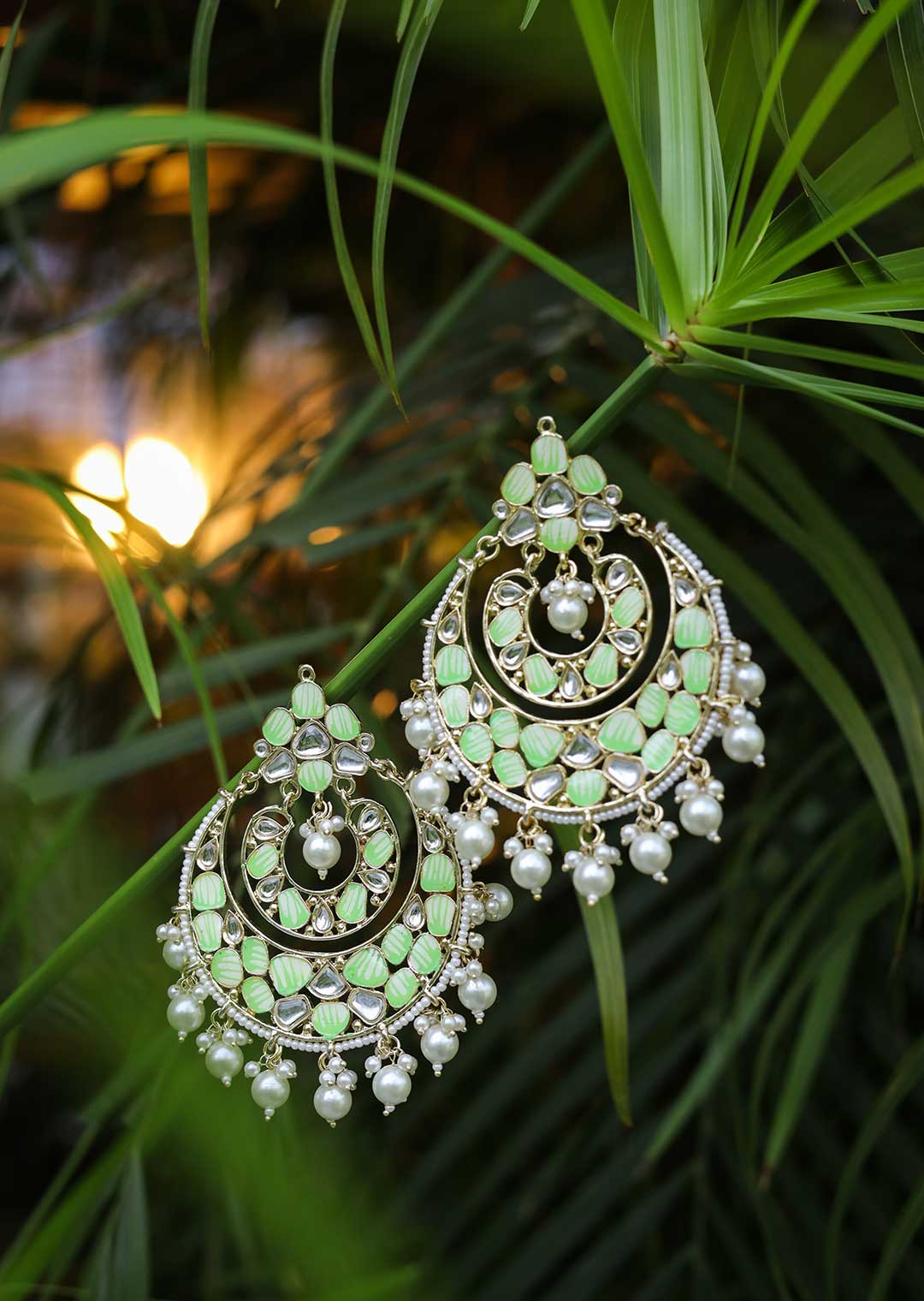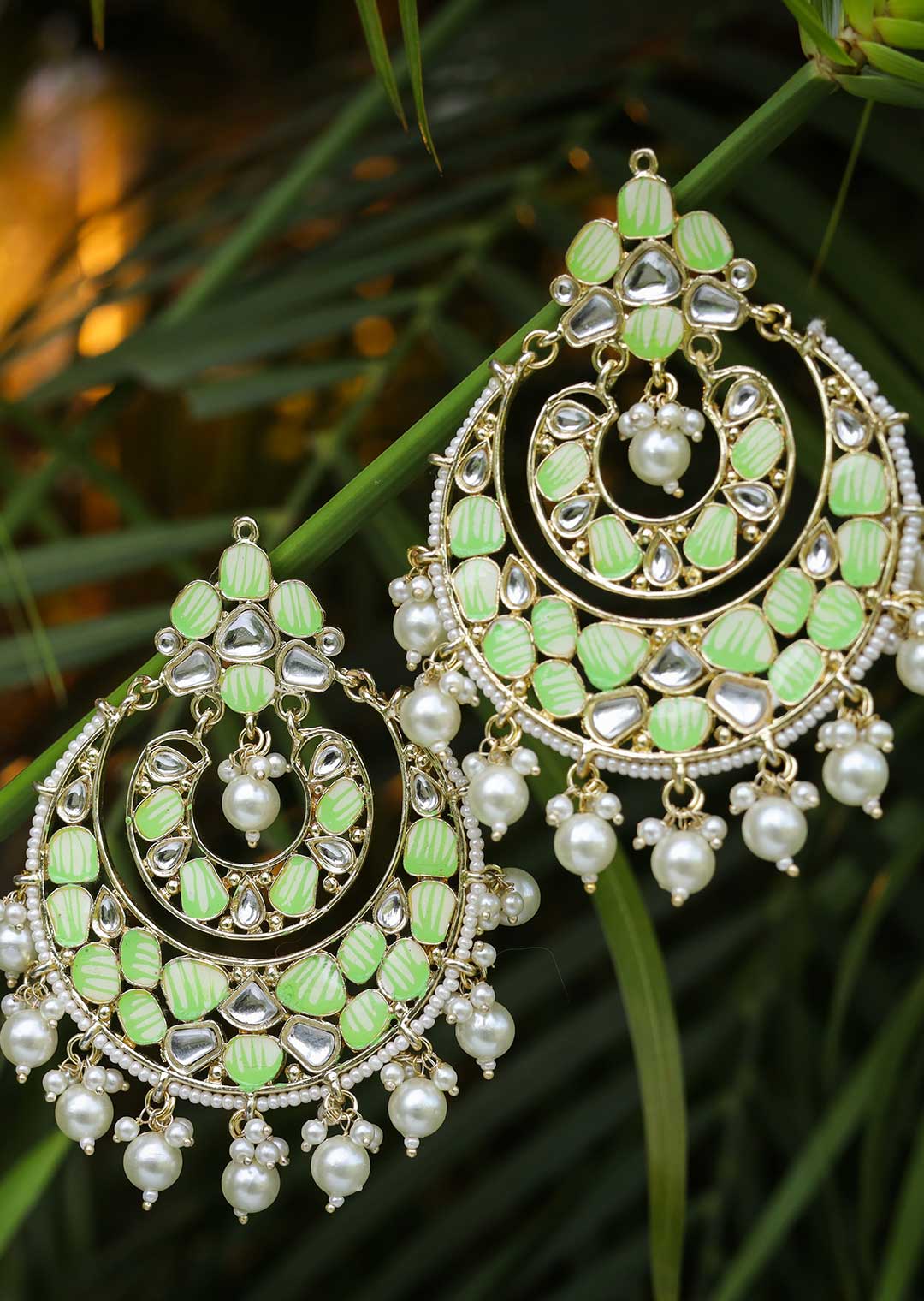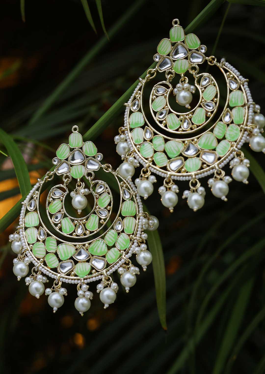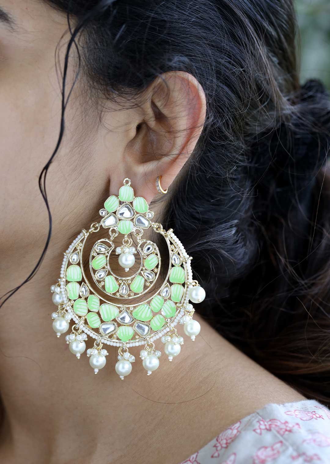 A pair of ethnic-inspired drop earrings. These stunning earrings in light green color add a touch of elegance to every outfit. Perfect for both casual and formal occasions, they effortlessly blend cultural charm with contemporary fashion.