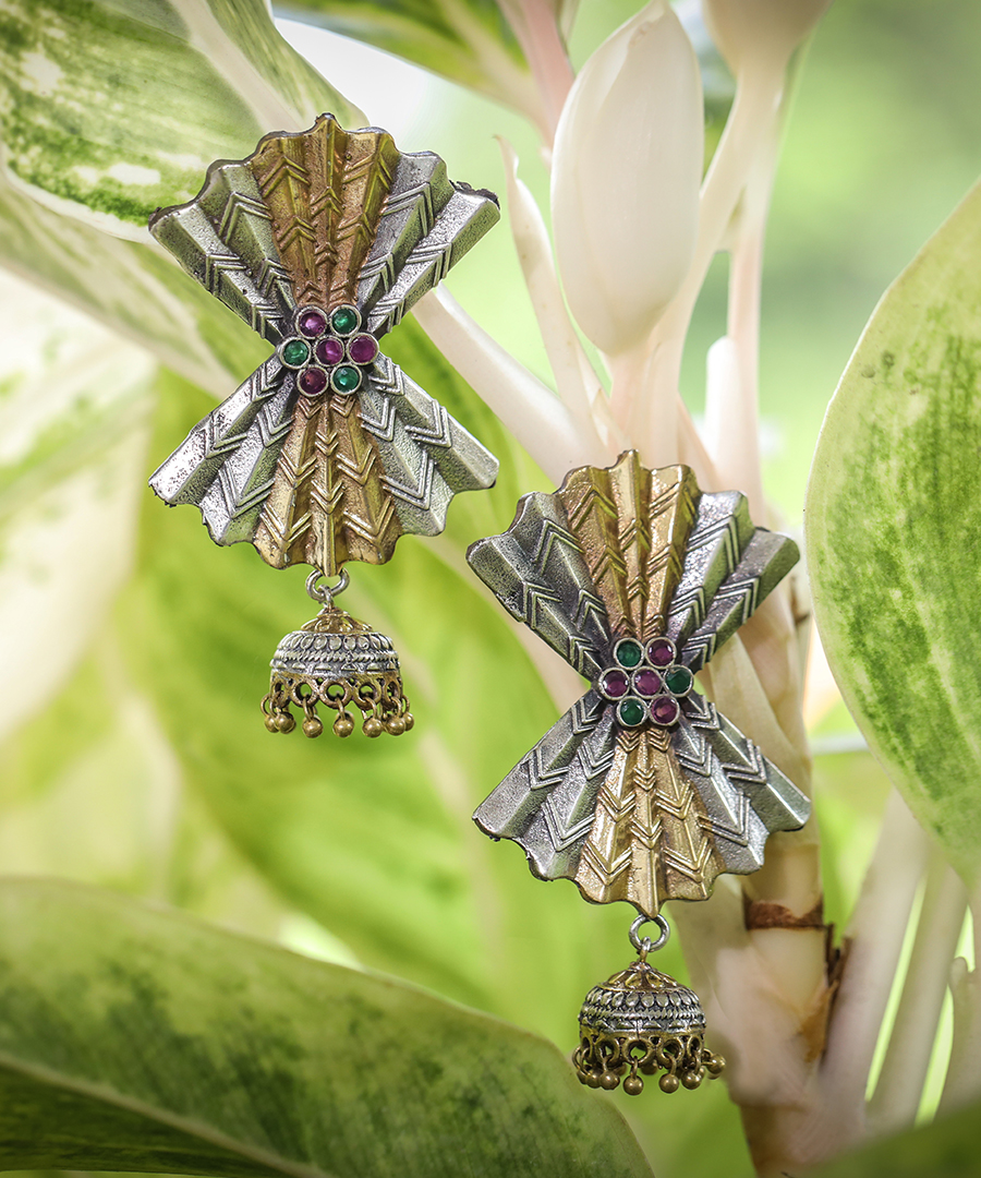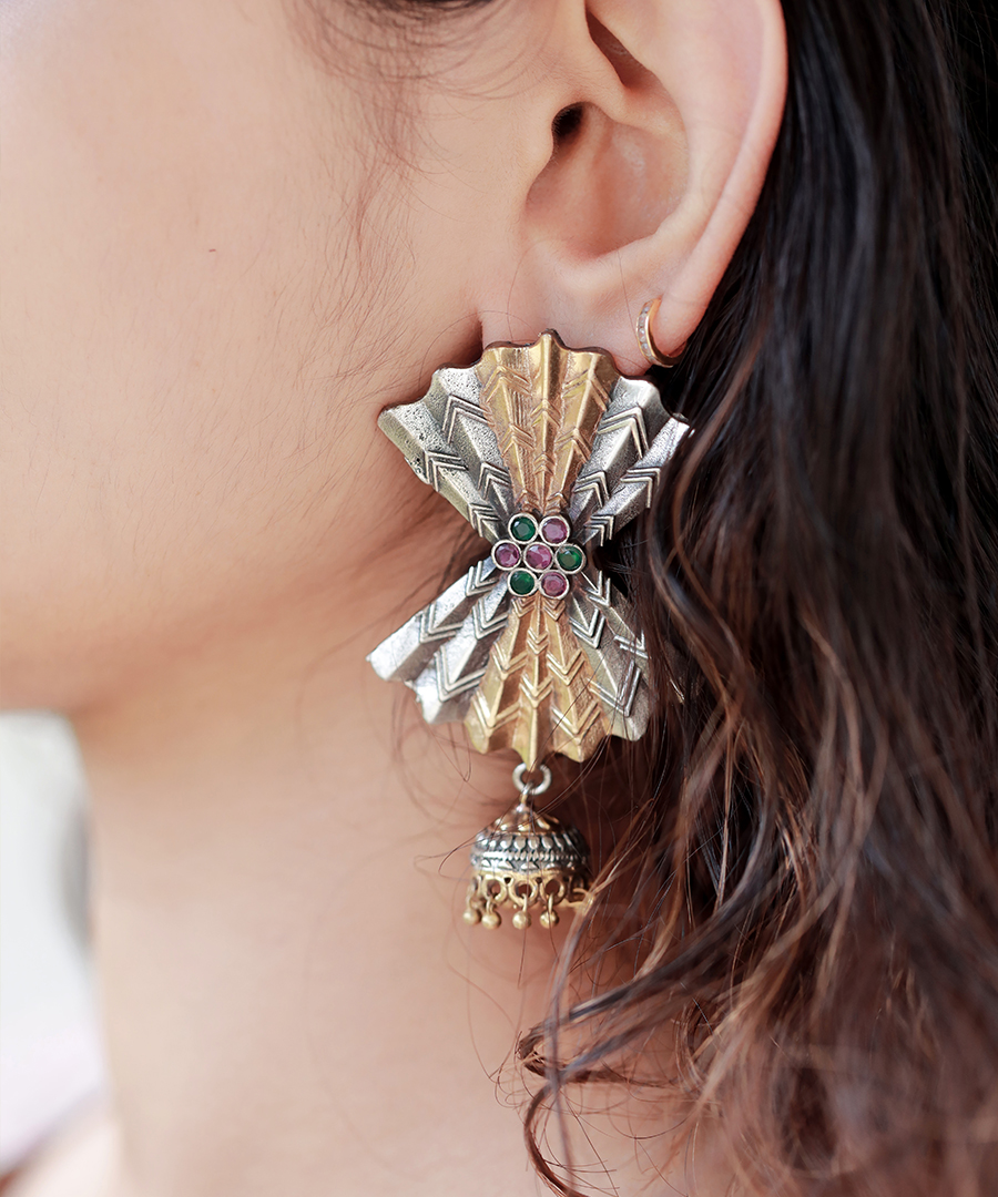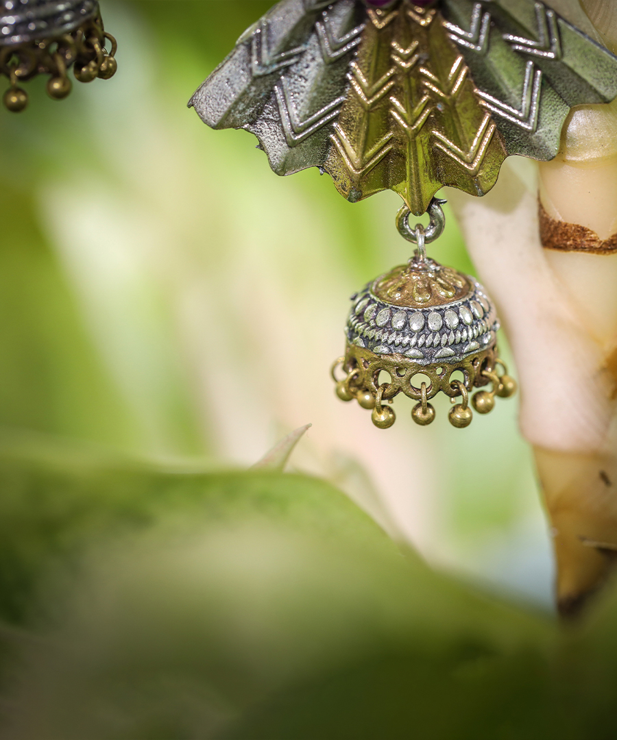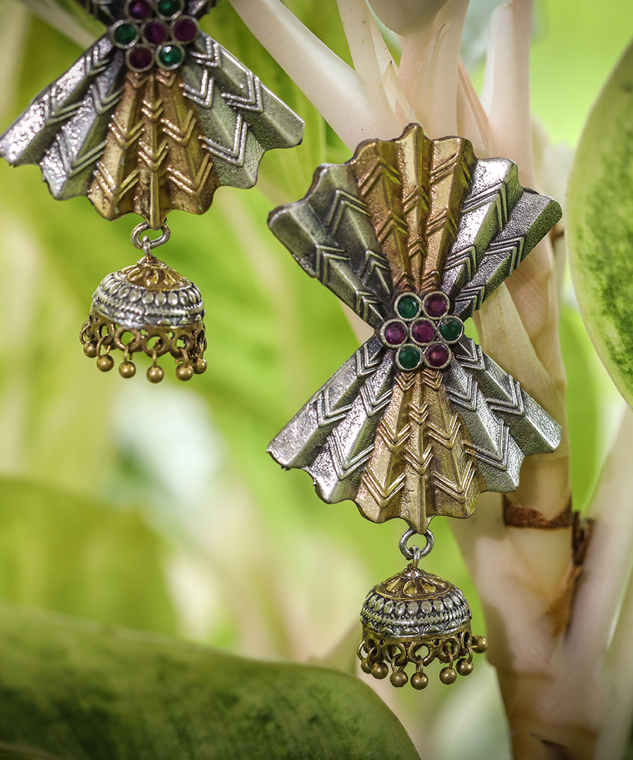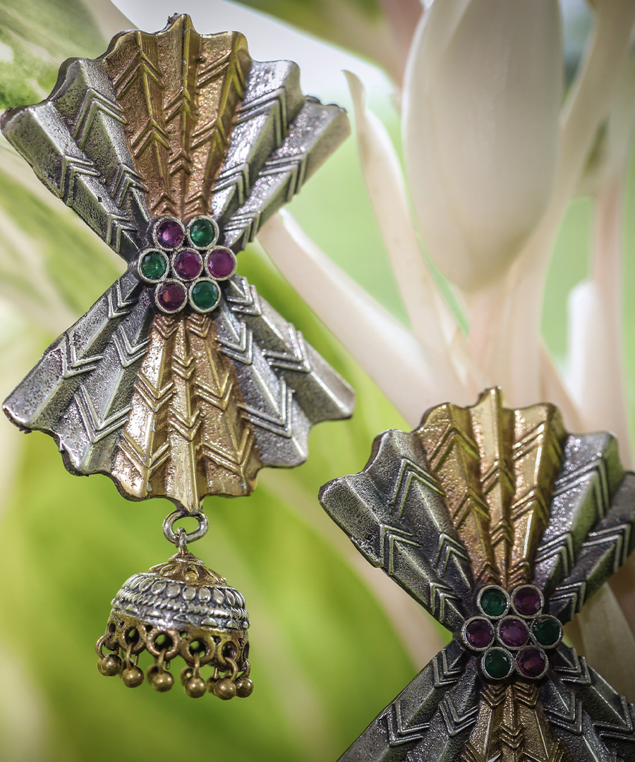 Introducing our exquisite oxidized earrings adorned with intricate gold and silver patterns. These earrings effortlessly blend tradition and elegance, making them the perfect accessory for any occasion. Elevate your style with these stunning earrings that add a touch of sophistication to your look.
